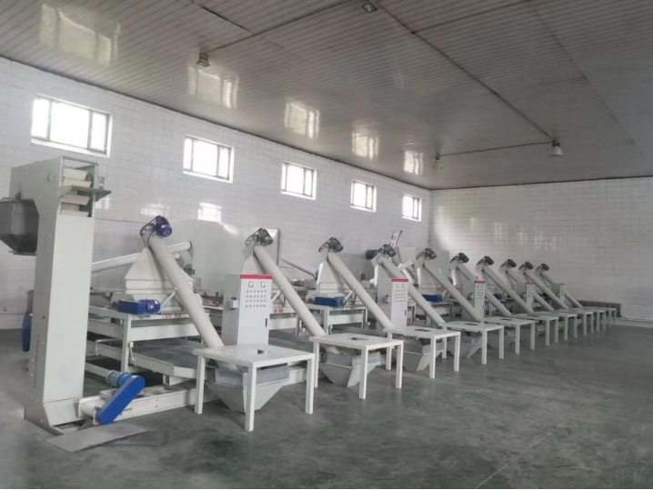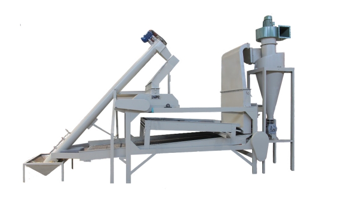TFBGZ-400脫殼分選機(jī)是一款可實(shí)現(xiàn)脫殼、除皮、分選一體化的南瓜籽脫殼分選設(shè)備。該機(jī)利用絞輪提升機(jī),脫殼器及震動(dòng)分選系統(tǒng),使加工物料擁有較高的商品性。原料通過絞輪提升機(jī)進(jìn)入脫殼器中脫殼,脫殼后的物料通過震動(dòng)篩將仁從殼中脫離,同時(shí)篩除碎仁;皮通過提皮器排出,籽和仁落入第二層震動(dòng)分選篩進(jìn)行二次分離,仁從成品料口排出,籽進(jìn)入緩存料箱通過膠輪傳送到脫殼器進(jìn)行二次脫殼。該設(shè)備可配套流水線使用,提高產(chǎn)能且降低生產(chǎn)成本。